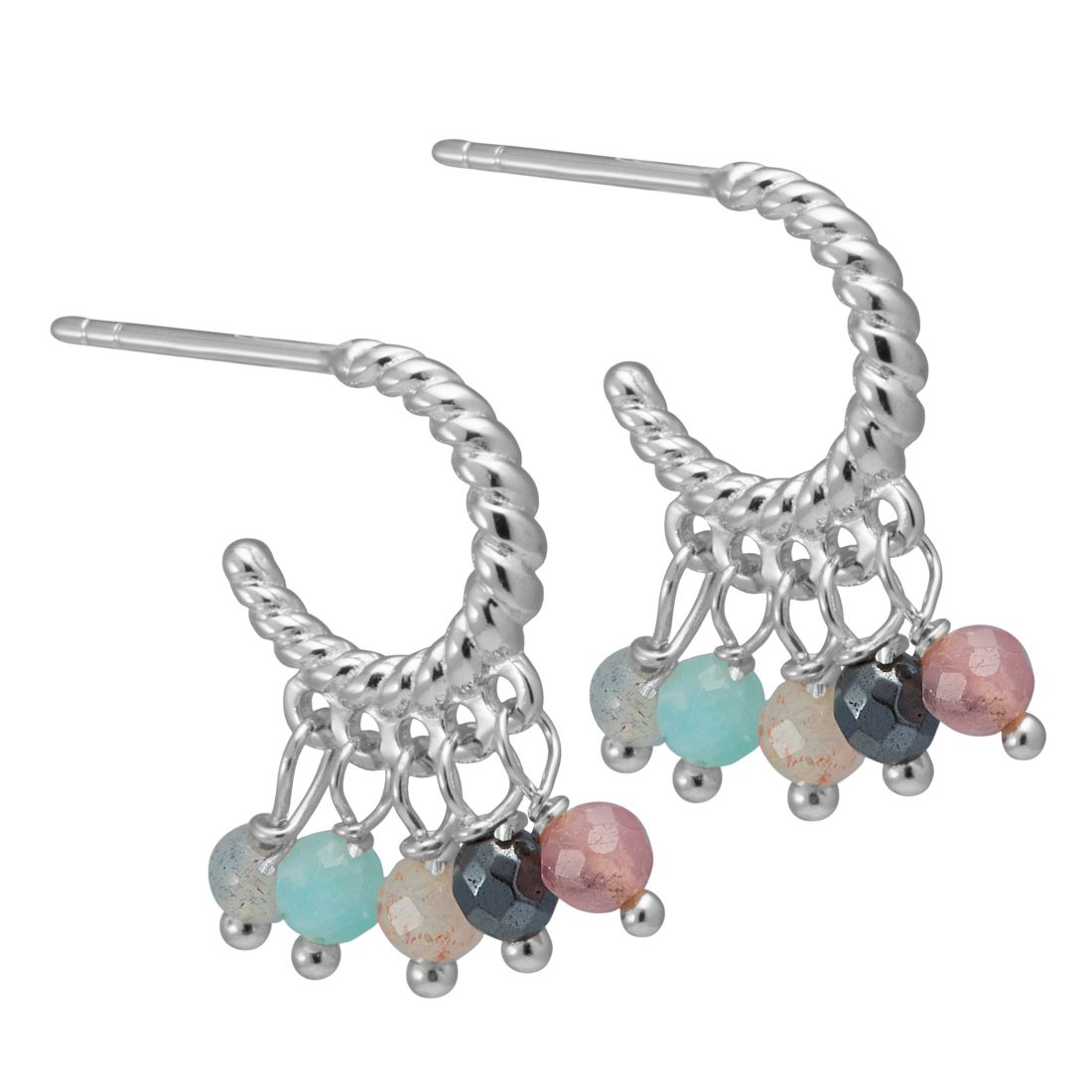 12 mm. snoede creoler i Sterling sølv med halvædelsten.