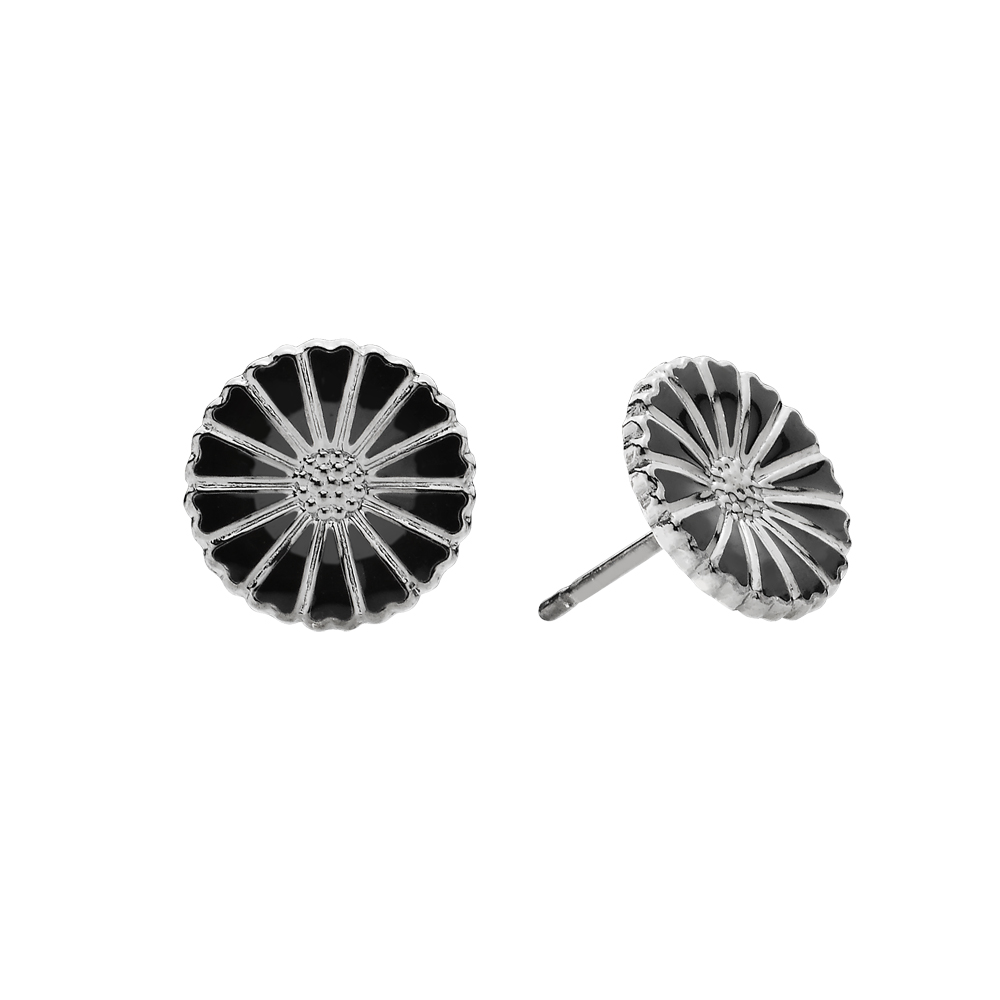 Sølv rhodineret marguerit ørestikker med sort emalje i størrelsen 11mm